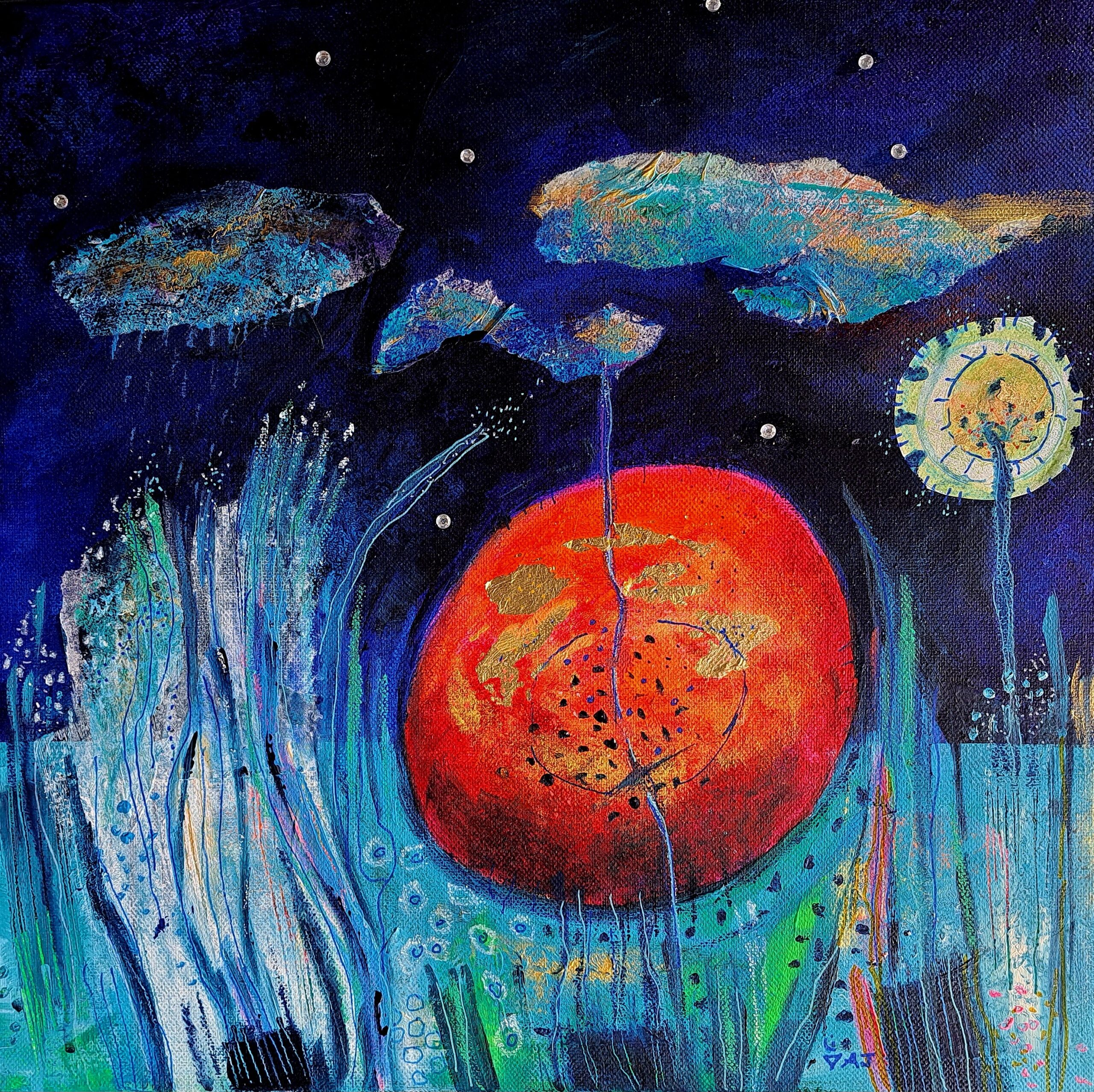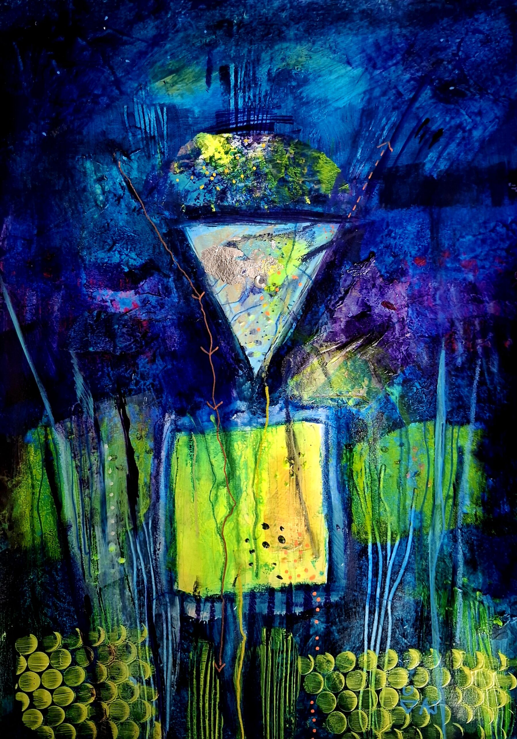 In my current work I am using symbols, which represent the Tattva’s or elements, as well as the upward pointing triangle representing Siva or consciousness. We are living in disturbing and turbulent times on this planet. We need to raise our consciousness to create balance instead of mayhem. In a subtle way maybe, I am…