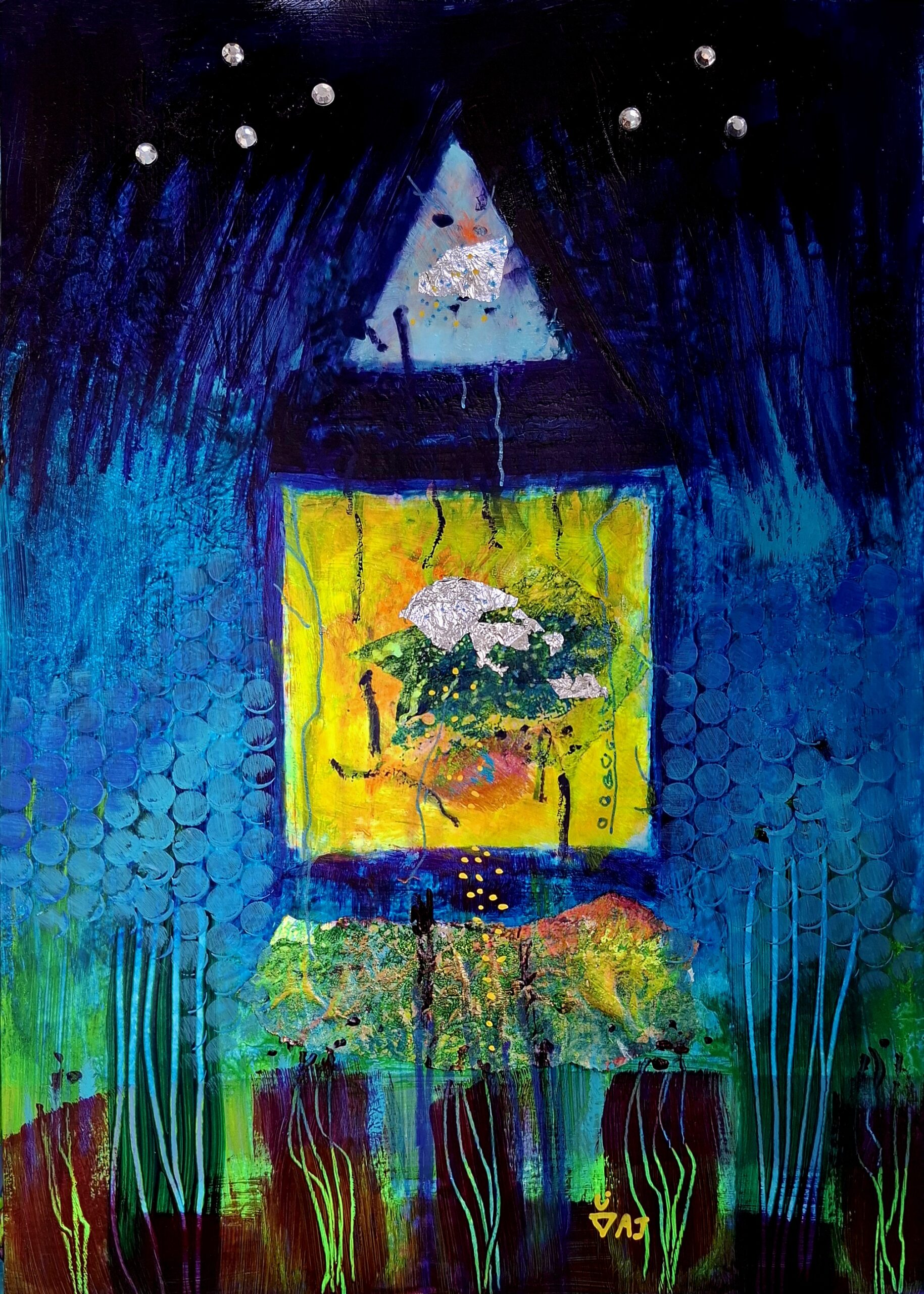 Acrylic & mixed media on paper. 21cm/29.5cm. Unmounted and unframed.